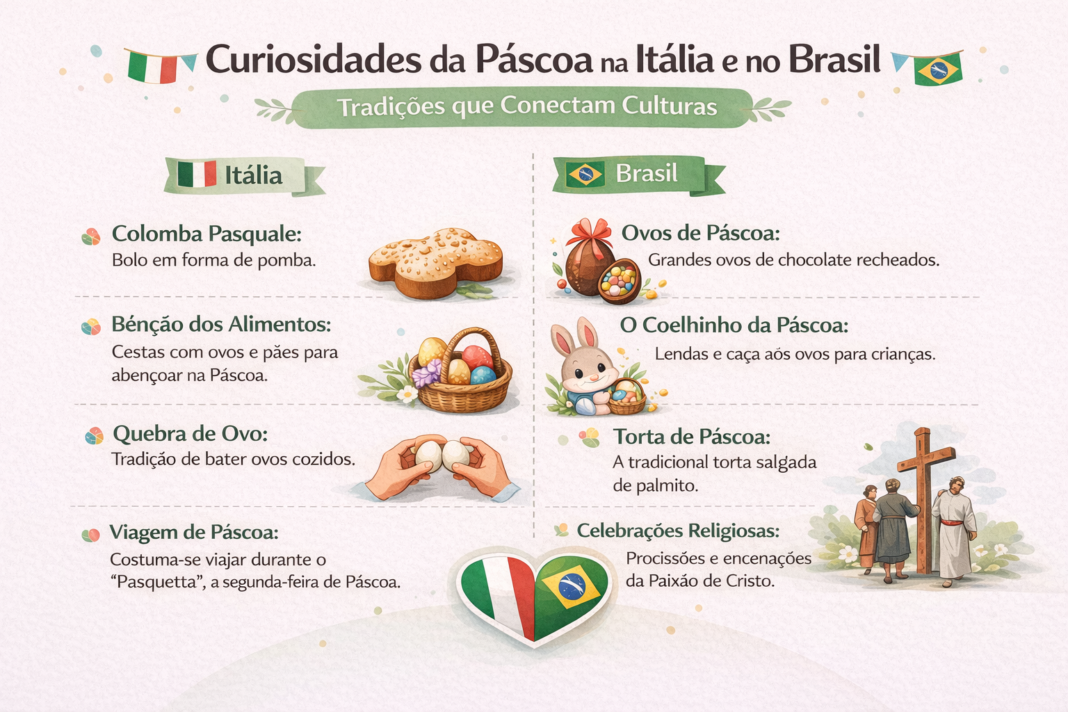A Páscoa é uma das celebrações mais significativas do calendário cristão, carregada de simbolismo, fé e tradições que atravessam gerações. Vivenciando de perto as culturas italiana e brasileira, é impossível não perceber como essa data, embora compartilhada em essência, se manifesta de formas únicas em cada país, revelando histórias, costumes e identidades distintas.